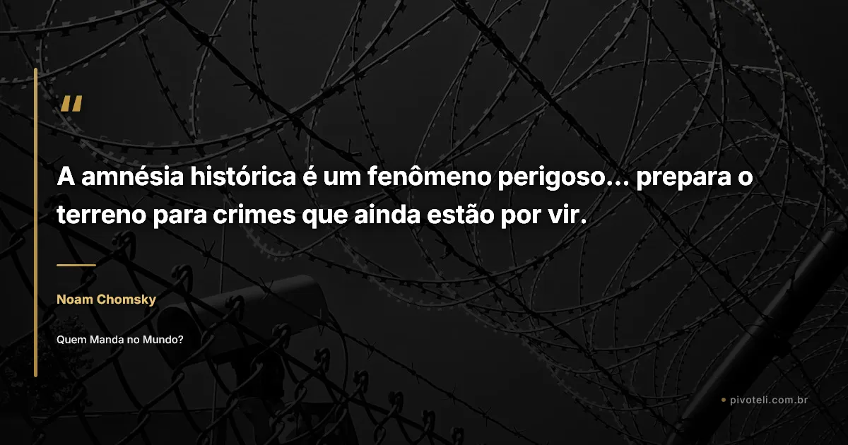 Chomsky alerta que o esquecimento coletivo da história não é acidental — é cultivado para permitir que crimes se repitam.