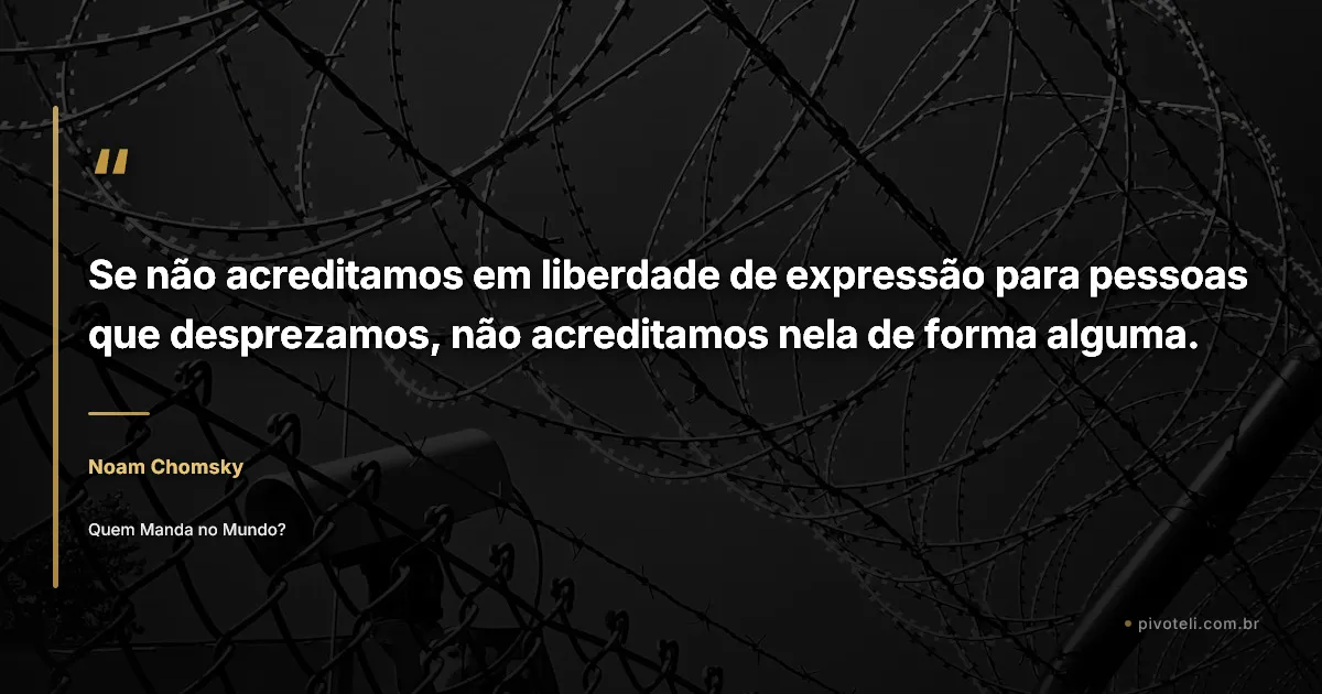Uma das frases mais famosas de Noam Chomsky: o teste real da liberdade é proteger o discurso de quem consideramos repugnante.