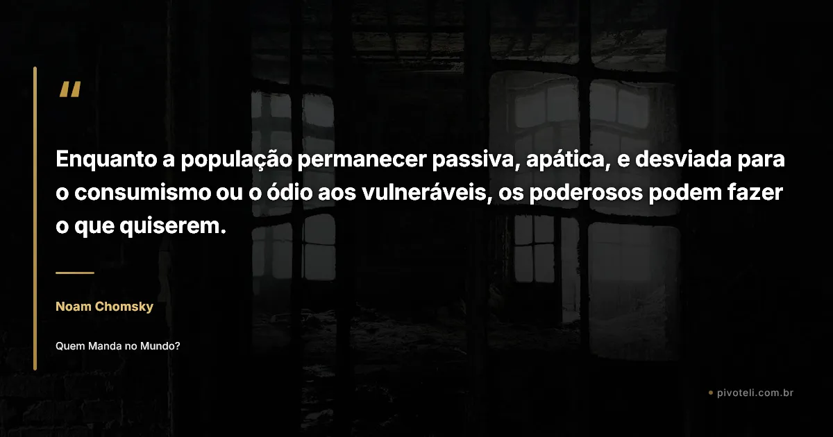 “Enquanto a população permanecer passiva, apática, e desviada para o consumismo ou o ódio aos vulneráveis, os poderosos podem fazer o que quiserem.”