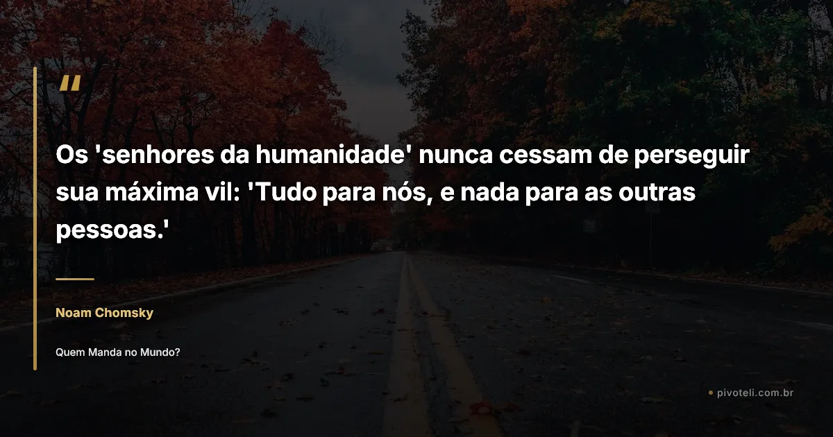 “Os 'senhores da humanidade' nunca cessam de perseguir sua máxima vil: 'Tudo para nós, e nada para as outras pessoas.'”