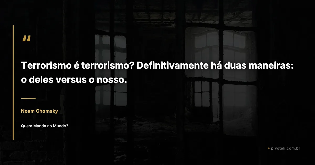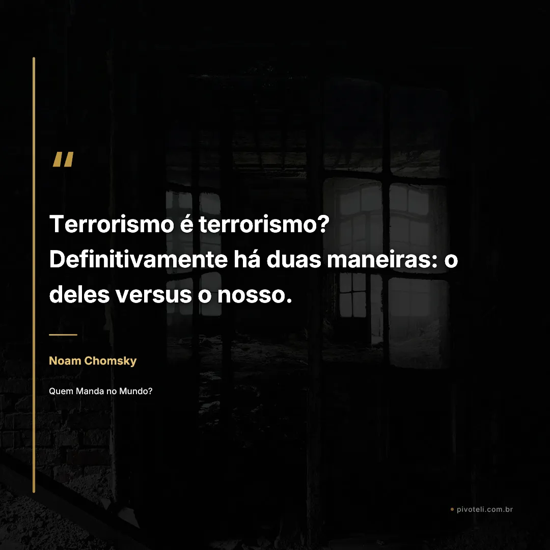 Chomsky expõe a hipocrisia da definição de terrorismo: a mesma ação recebe nomes diferentes dependendo de quem a pratica.