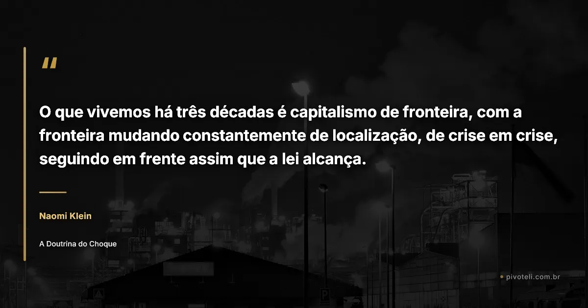 “O que vivemos há três décadas é capitalismo de fronteira, com a fronteira mudando constantemente de localização, de crise em crise, seguindo em frente assim que a lei alcança.”