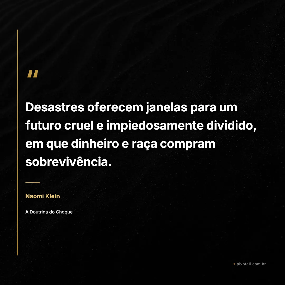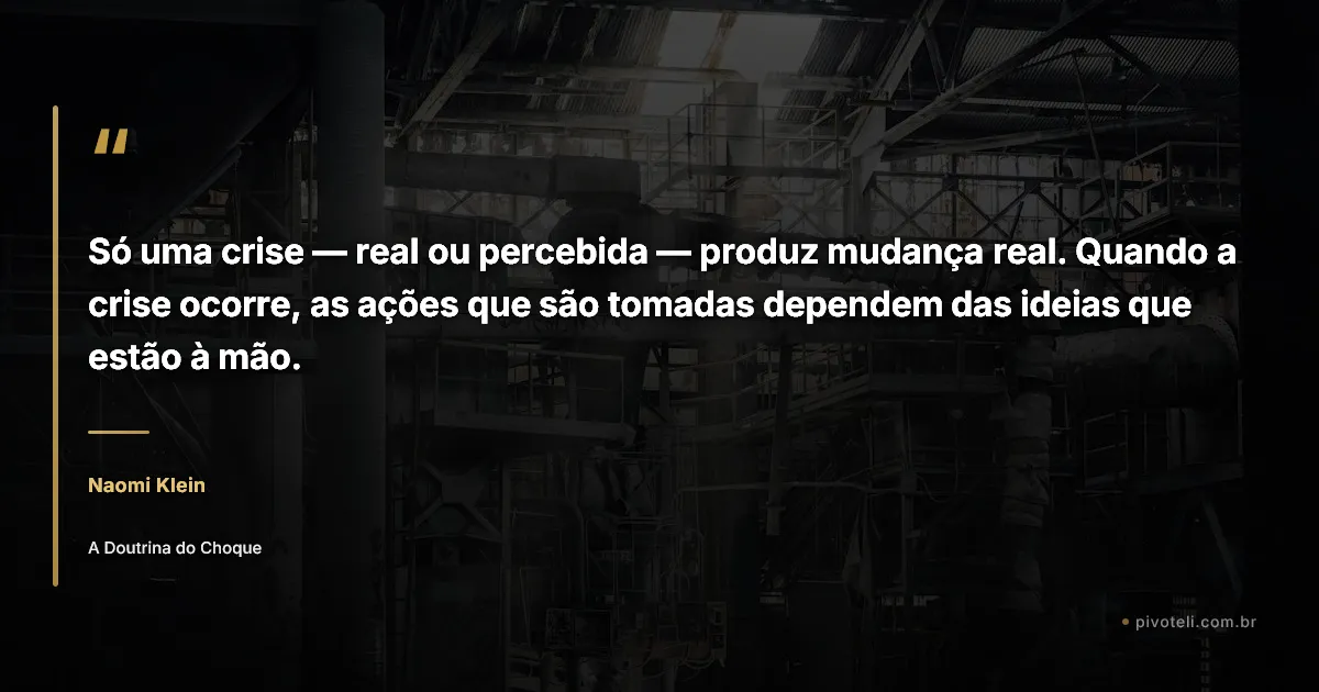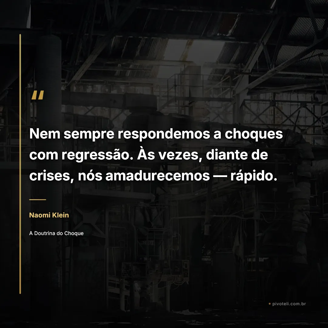 A frase que transforma A Doutrina do Choque de denúncia em convocação. Crises são disputáveis — depende de quem tem as ideias prontas.