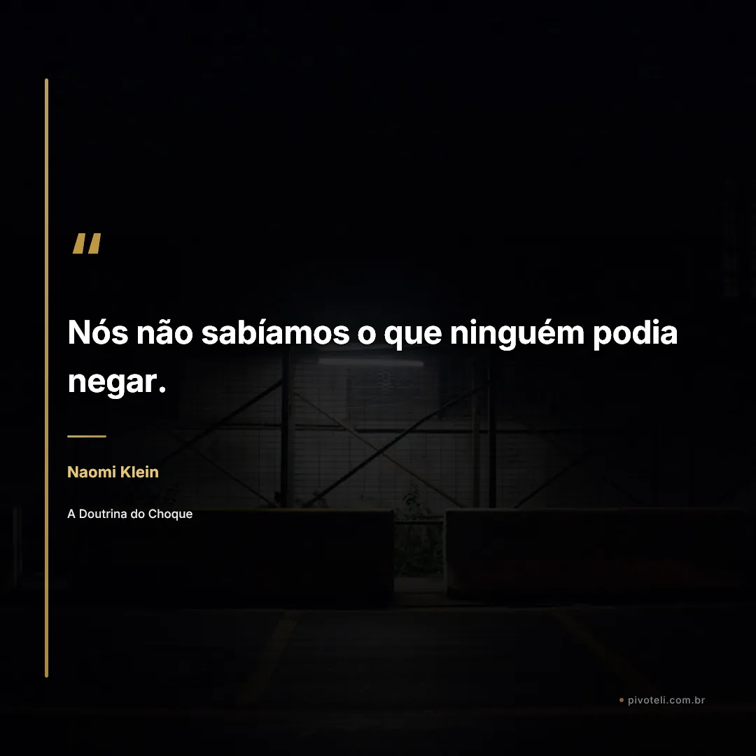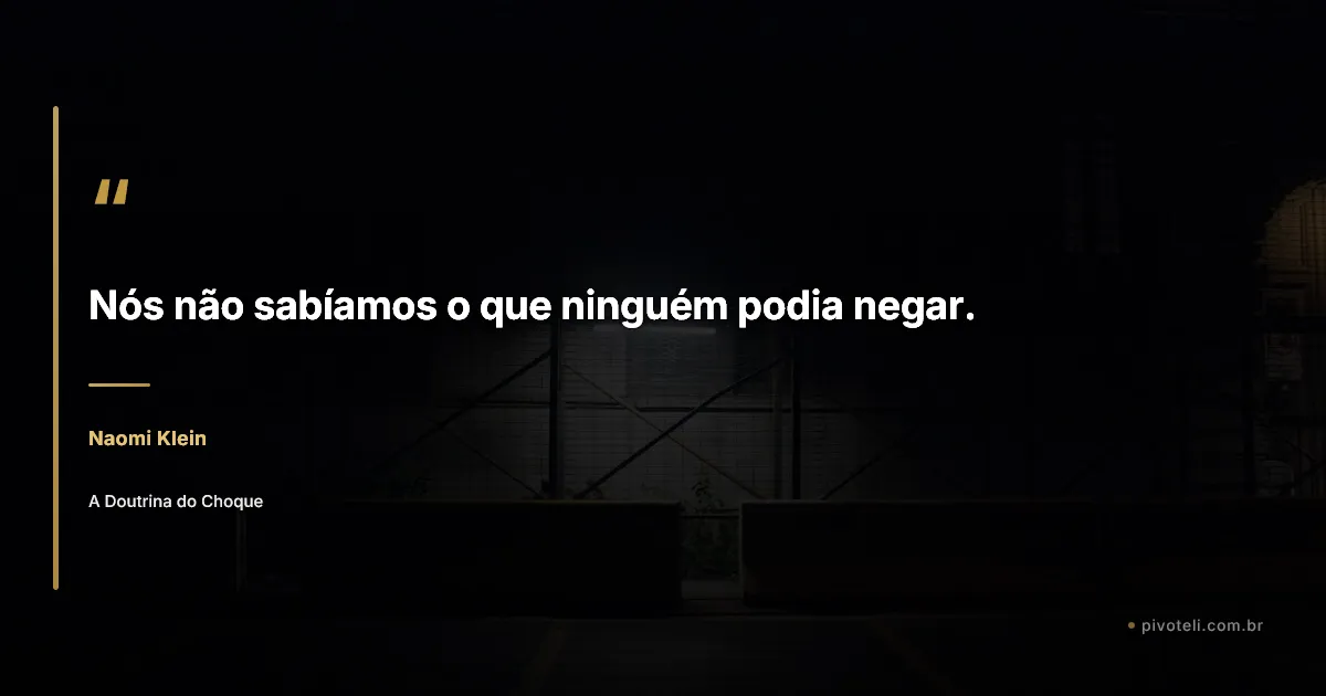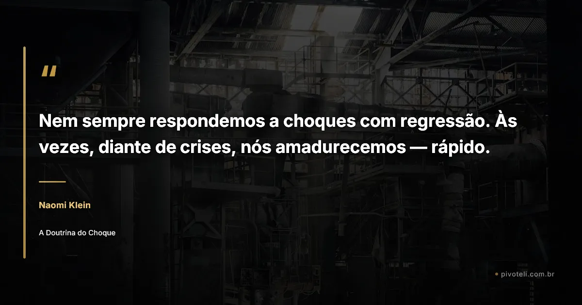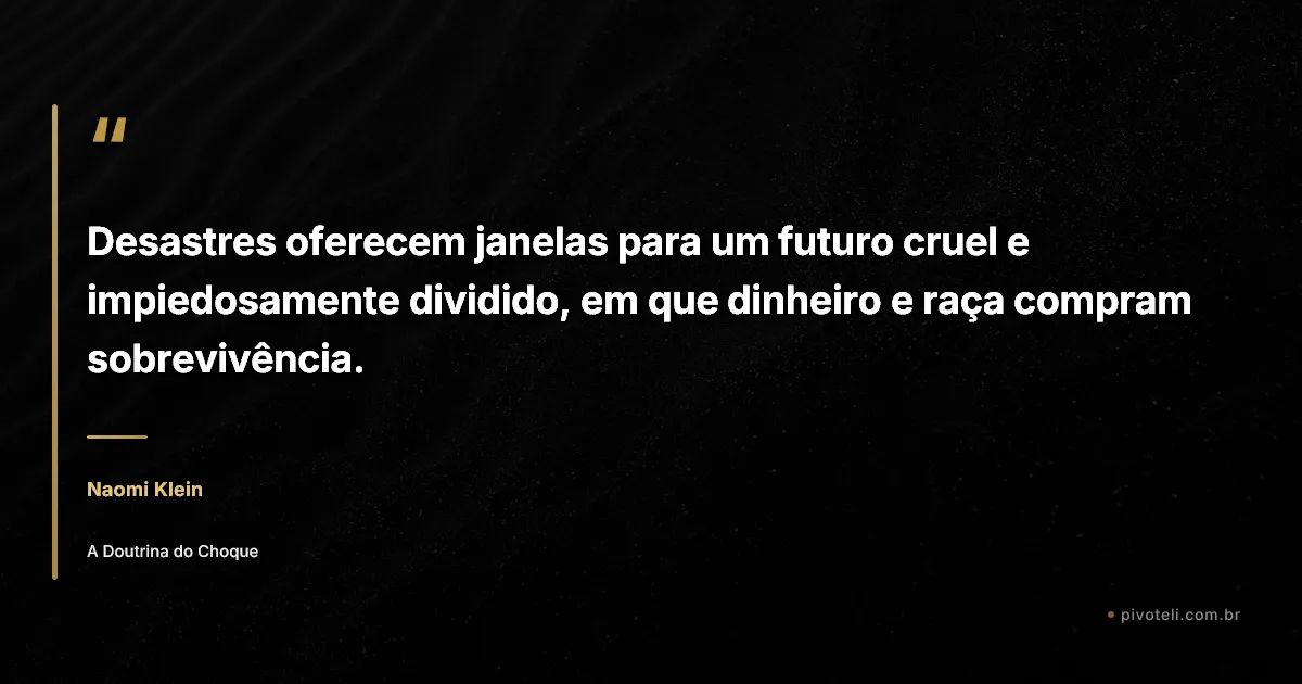 A frase que transforma A Doutrina do Choque de denúncia em convocação. Crises são disputáveis — depende de quem tem as ideias prontas.
