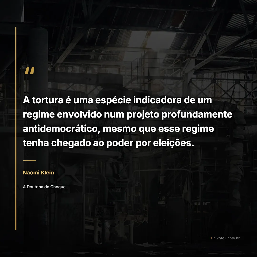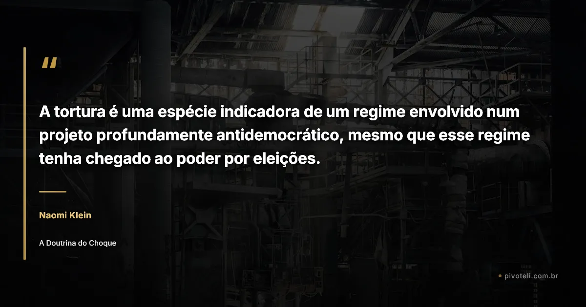 Klein não diz que tortura é errada — isso é óbvio. Diz que tortura é informação: onde há tortura, há um programa econômico impopular sendo forçado.