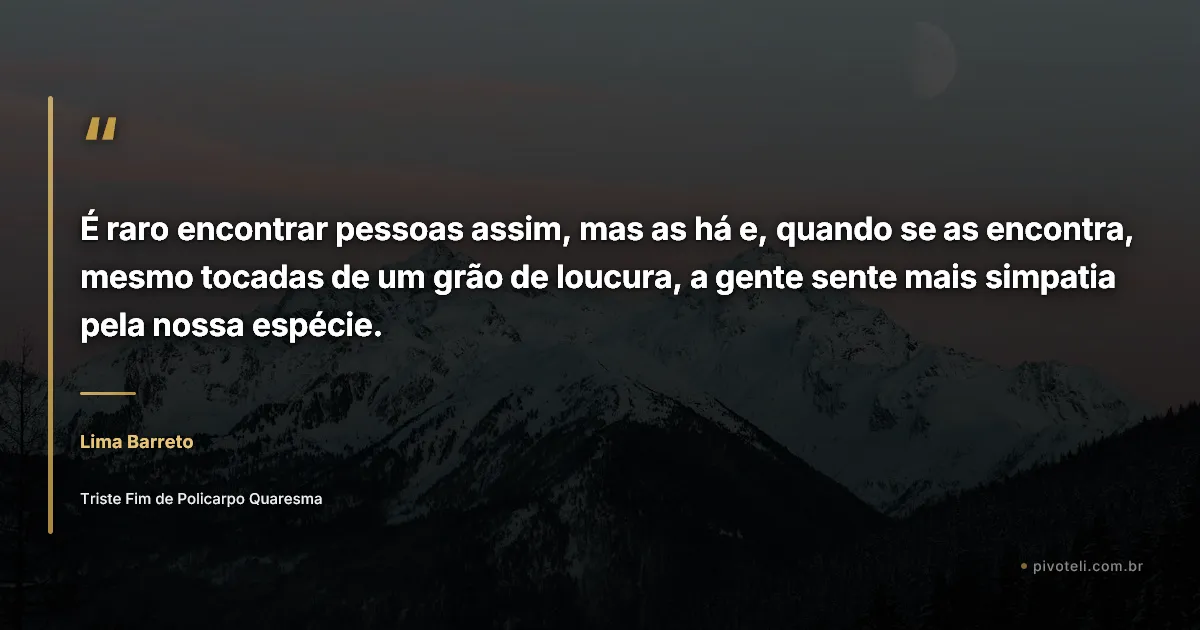 É raro encontrar pessoas assim, mas as há e, quando se as encontra, mesmo tocadas de um grão de loucura, a gente sente mais simpatia pela nossa espécie.
