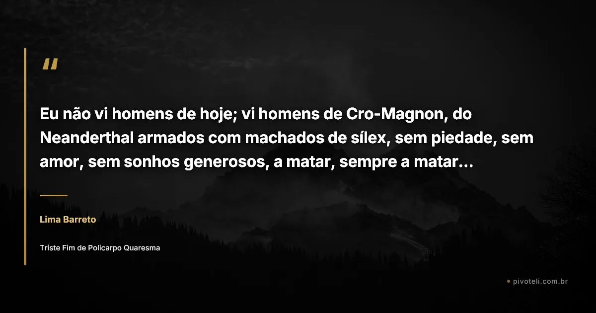 Eu não vi homens de hoje; vi homens de Cro-Magnon, do Neanderthal armados com machados de sílex, sem piedade, sem amor, sem sonhos generosos, a matar, sempre a matar...