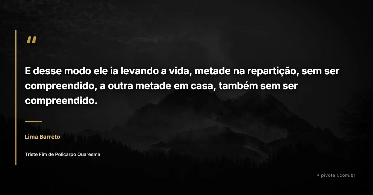 E desse modo ele ia levando a vida, metade na repartição, sem ser compreendido, a outra metade em casa, também sem ser compreendido.