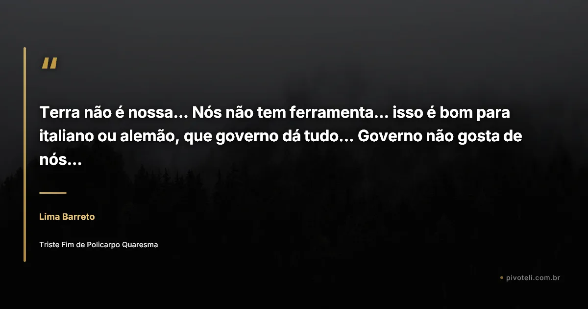 Terra não é nossa... Nós não tem ferramenta... isso é bom para italiano ou alemão, que governo dá tudo... Governo não gosta de nós...